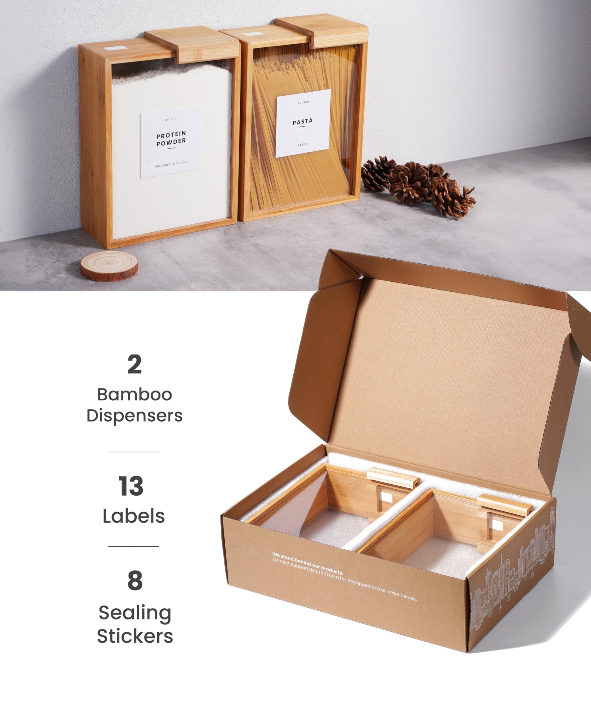 - Versatile Kitchen Organizers and Storage: Ideal for organizing cereals, rice, flour, and snacks with this 2L capacity bamboo food dispenser.