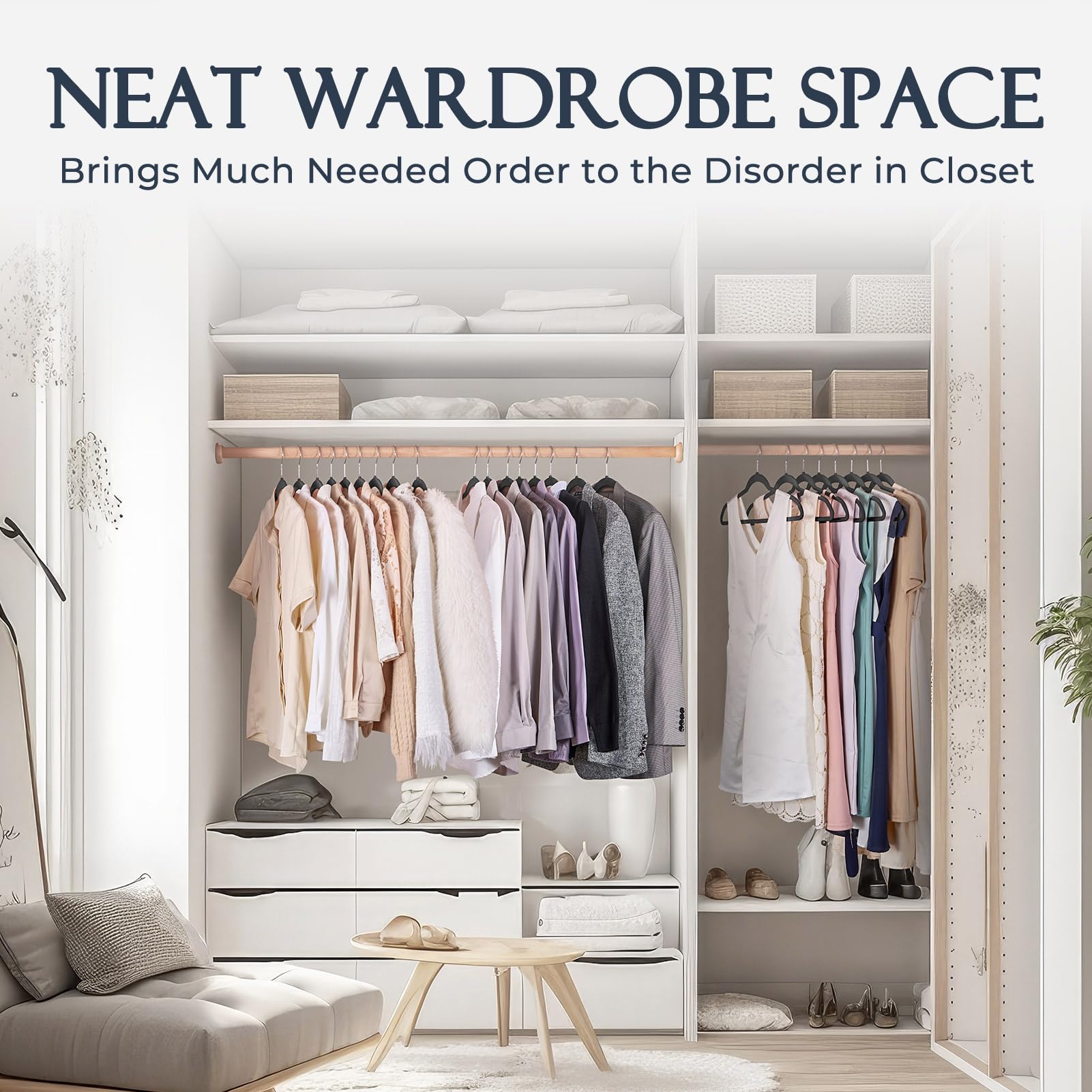 - Non Slip Design: The specially developed shoulder line help to promise worry-free preservation of the clothing's shape; The groove on shoulder could be used to hang clothes with thin shoulder strap, great without slipping off for clothes on closet storage