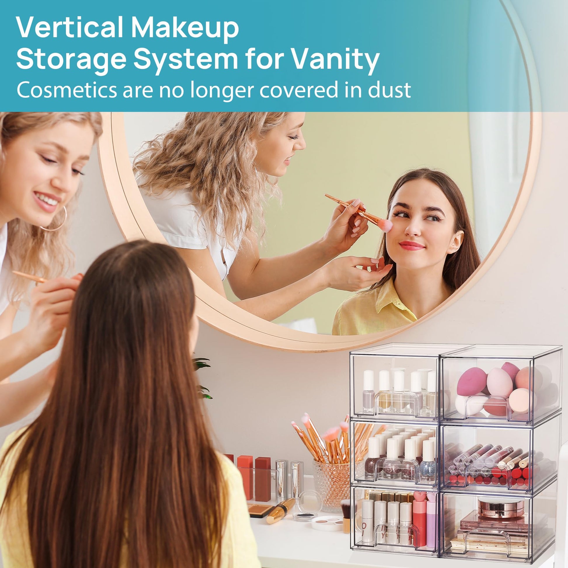 Vtopmart (6 Pack) Small Clear Stackable Storage Drawers – Acrylic Makeup Organizer Bins for Vanity, Undersink, and Cabinet